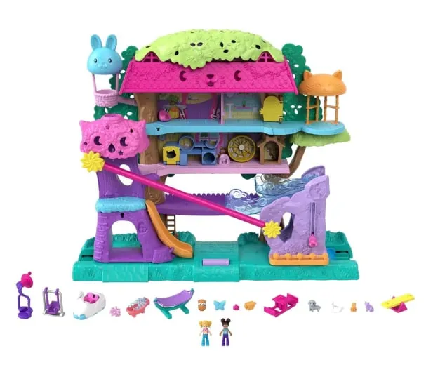 - Domek na drzewie z akcesoriami do zabawy, które stymulują wyobraźnię.